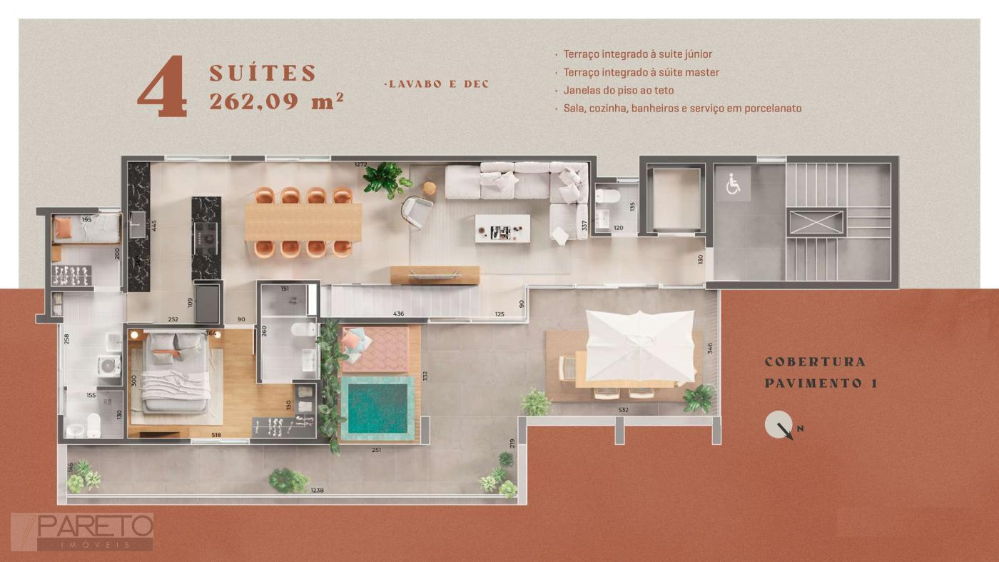 Lazer: academia, bicicletário, coworking, espaço fitness, Espaço gourmet, Espaço kids, gazebo, piscina, sauna.