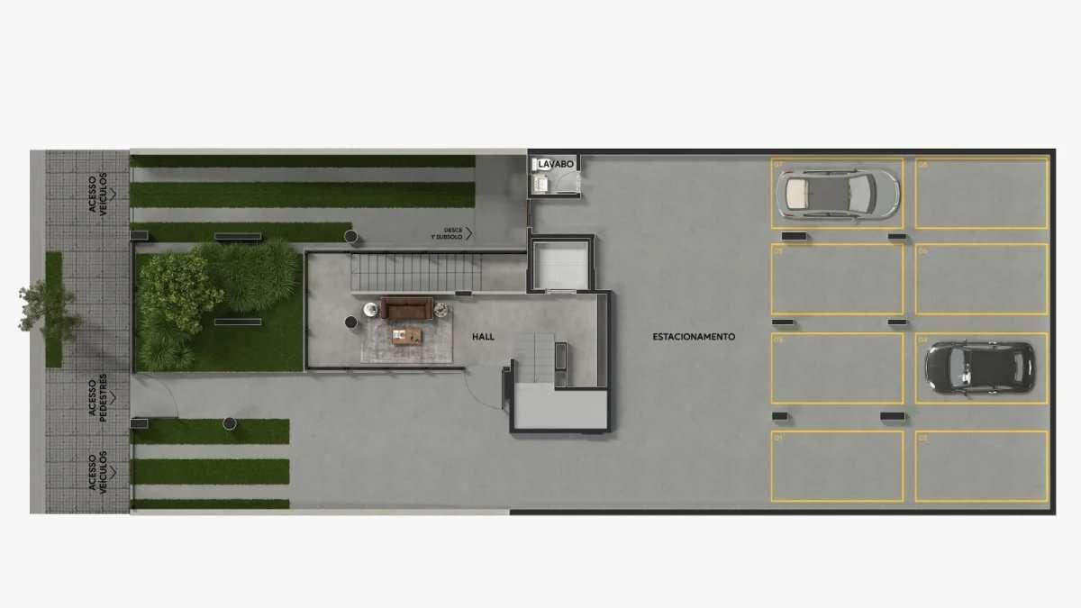2 vagas para o apartamento tipo e 3 vagas para as Coberturas