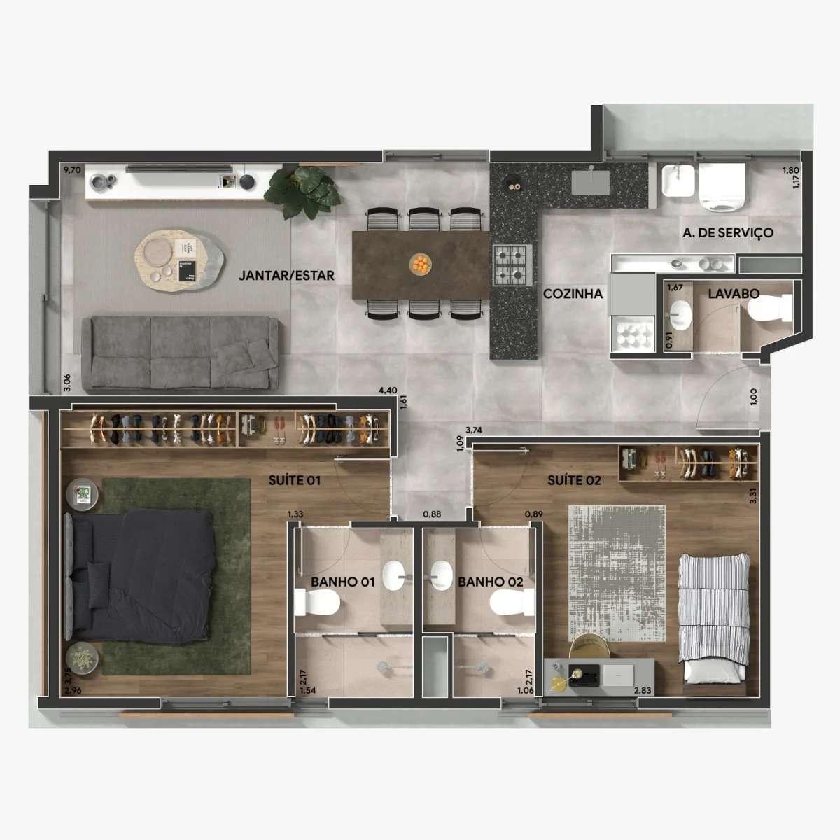 2 quartos com 2 suítes