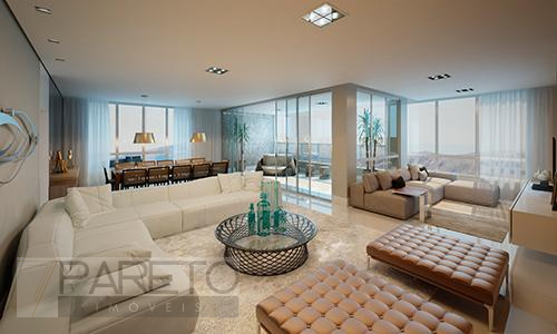 Características do Apartamento:Apartamentos com 294,27 mQuatro suítesSala para cinco ambientes Varanda panorâmica Cozinha ampla e ventilada, com piso e bancada em granitoÁrea de serviço com piso em granito e portas de alumínio Apartamentos com quatro ou cinco vagas de garagem e box privativoPiso da sala, lavabo e banhos em branco Super NanoglassQuartos com piso de madeira maciçaMedidores individuais de água quente, fria, gás e energia Suíte master com banheira de hidromassagem dupla